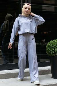 Modalamelif Nıke Nakışlı Kapüşonlu İkili Takım Gri