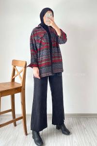 Modalamelif Oduncu Etnik Desen Gömlek Gri-Kırmızı