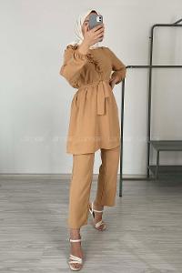 Lamelif Balance Armalı Çımalı İkili Tesettür Takım Camel