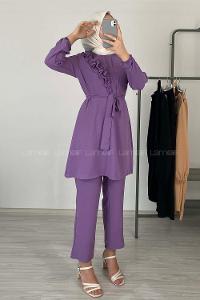Modalamelif Omuz Fırfırlı İkili Takım Eflatun
