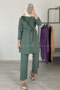 Modalamelif Omuz Fırfırlı İkili Takım Pastel Yeşili