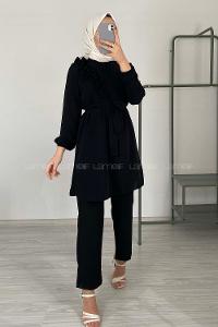 Lamelif Balance Armalı Çımalı İkili Tesettür Takım Siyah