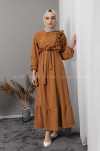 Lamelif Bağlama Detaylı Robalı Elbise Acı Kahve