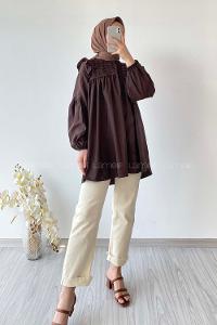 Modalamelif Omuz Fırfırlı Önü Büzgülü Tunik Acıkahve
