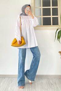 Lamelif Lopez Balon Kol Tunik Beyaz