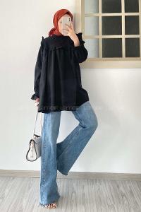 Modalamelif Omuz Fırfırlı Pileli Tunik Siyah