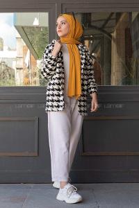 Modalamelif Ön Düğmeli Kazayağı Desen Ceket Ekru