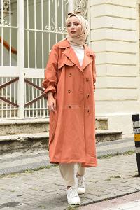 Modalamelif Ön Düğmeli Kuşaklı Trenç Kiremit