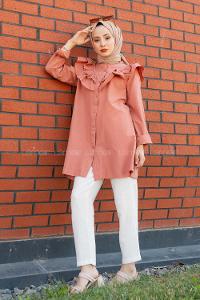 Modalamelif Ön Düğmeli Yaka Fırfırlı Gömlek Gül