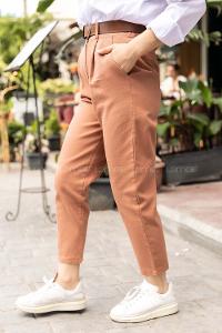 Modalamelif Ön Pileli Beli Kemer Detaylı Pantolon Kiremit