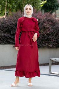 Lamelif Dalgıç Tesettür Elbise Bordo
