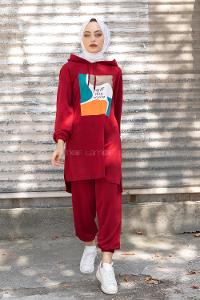 Modalamelif Önü Baskılı İkili Takım Bordo
