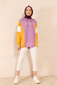 Modalamelif Önü Baskılı Parça Garnili Sweatshirt Lila