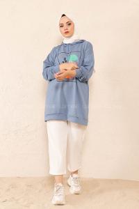 Modalamelif Önü Baskılı Tunik Açik Mavi