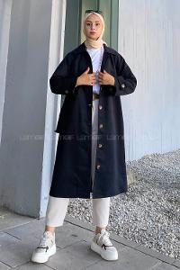 Lamelif Pelican Ön Düğmeli Trençkot Siyah