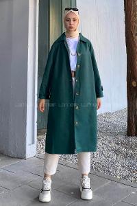 Modalamelif Önü Boydan Düğmeli Beli Kemerli Trenç Zümrüt