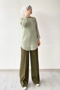 Lamelif Müslin Tesettür Gömlek Çağla Yeşili