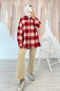 Modalamelif Önü Boydan Düğmeli Büyük Kareli Oduncu Gömlek Kırmızı