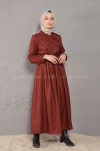Modalamelif Önü Boydan Düğmeli Elbise Kiremit