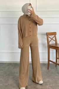 Lamelif Garnili Triko Takım Sütlü Kahve