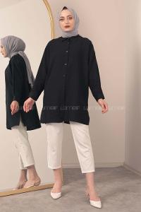 Modalamelif Önü Boydan Düğmeli Gömlek Siyah