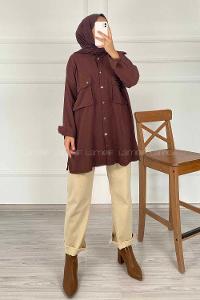 Lamelif Dekoratif Cep Detaylı Tesettür Ceket Acı Kahve