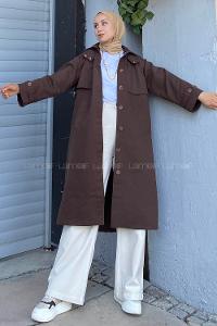 Lamelif Fleto Cep Omuz Apoletli Trençkot Acı Kahve