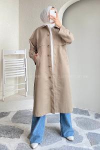 Lamelif Pelican Ön Düğmeli Trençkot Vizonrengi