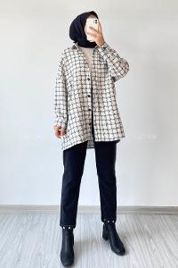 Modalamelif Önü Boydan Düğmeli Kareli Şanel Gömlek Beyaz