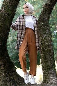 Modalamelif Önü Boydan Düğmeli Oduncu Ekose Gömlek Camel