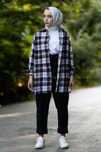Modalamelif Önü Boydan Düğmeli Oduncu Ekose Gömlek Gri-Bordo