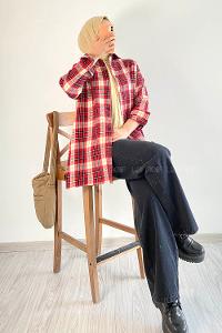 Modalamelif Önü Boydan Düğmeli Oduncu Ekose Gömlek Kırmızı