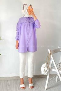 Modalamelif Önü Boydan Düğmeli Şerit Geçişli Tunik Gömlek Lila