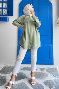 Modalamelif Önü Boydan Düğmeli Taş Detaylı Gömlek Çağla Yeşili