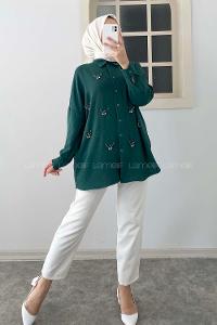 Modalamelif Önü Boydan Düğmeli Taş Modelli Gömlek Zümrüt