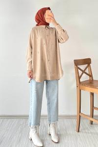 Vatka Detaylı Tesettür Gömlek Bej