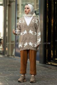 Modalamelif Önü Boydan Düğmeli Yıldız Desenli Triko Hırka Vizon