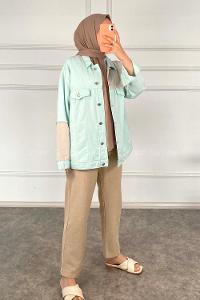 Modalamelif Önü Çıt Çıt Boy Düğmeli Omuz Kol Garnili Mint
