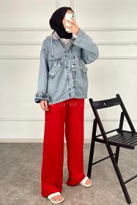 Modalamelif Önü Cıt Cıt Düğmeli Kapüşonlu Ceket Kot Mavisi-Gri