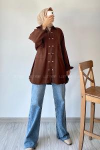 Lamelif Dekoratif Cep Detaylı Tesettür Ceket Acı Kahve
