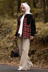 Modalamelif Önü Çıtçıt Düğmeli Kapak Cepli Ekose Gömlek Siyah-Kırmızı