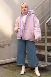 Modalamelif Önü Çıtçıt Düğmeli Kapşonlu Mont Lila