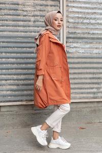 Modalamelif Önü Çıtçıt Düğmeli Kuşgözlü Trenç Kiremit