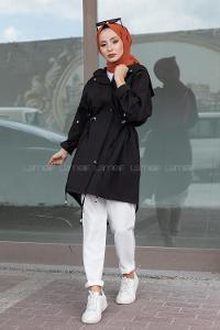 Lamelif Gold Düğmeli Bağlamalı Tesettür Kaban Siyah