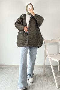 Lamelif Biye Detaylı Tedy Peluş Mont Haki