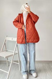 Modalamelif Önü Çıtçıt Düğmeli Mont Kiremit
