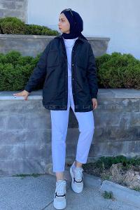 Modalamelif Önü Çıtçıt Düğmeli Mont Siyah