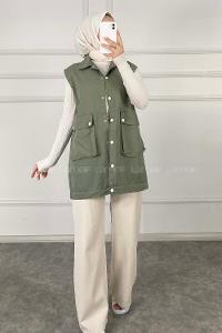 Modalamelif Önü Çıtçıt Düğmeli Yelek Haki Rengi