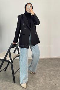Modalamelif Önü Düğme Detaylı Ceket Siyah
