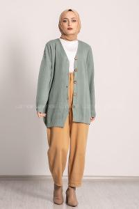 Modalamelif Önü Düğme Detaylı Düz Hırka Çağla Yeşili